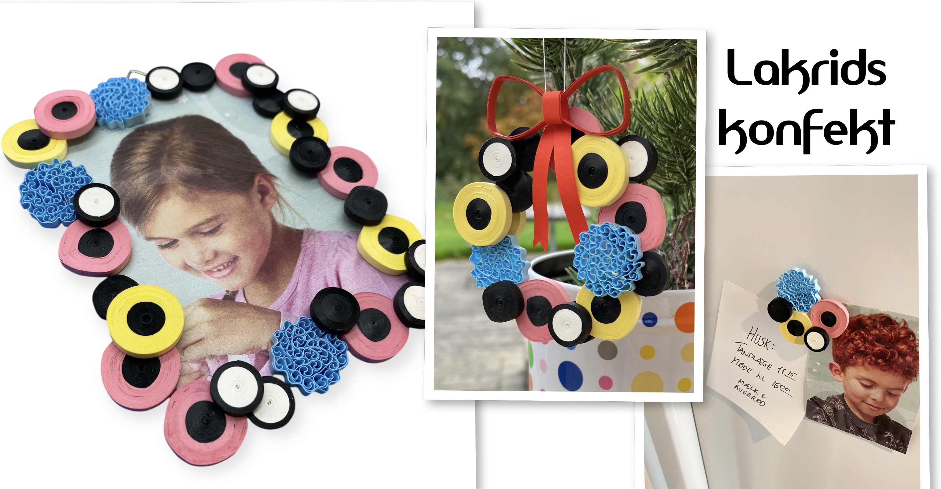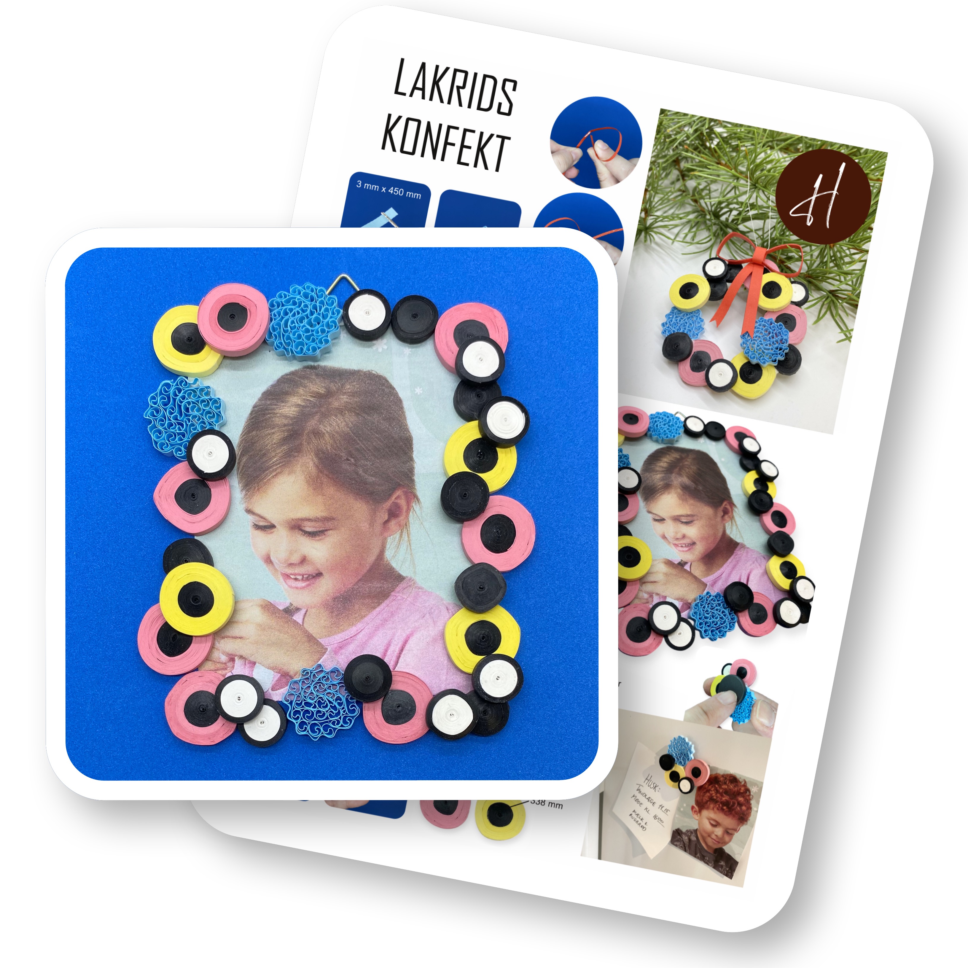 Der er vist forskellige idebilleder til hvad du kan lave med lakridskonfekten, f.eks fotorammer, kranse med sløjfe og lakridskonfekt-magneter.