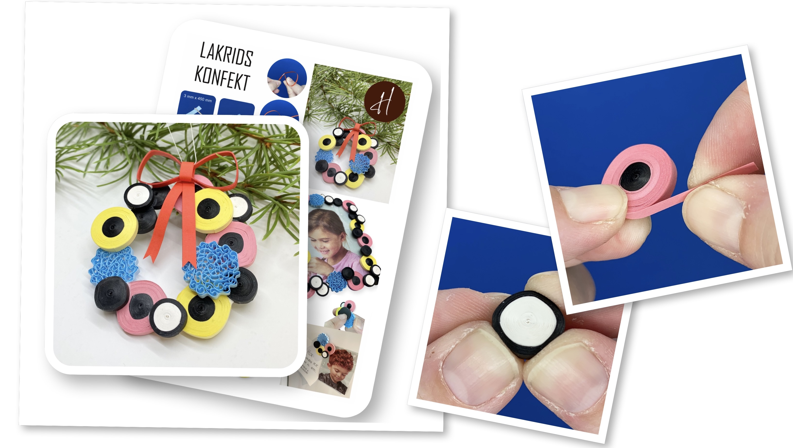 Ide-side med 1:1 billeder og instruktion til lakridskonfekt og sløjfe