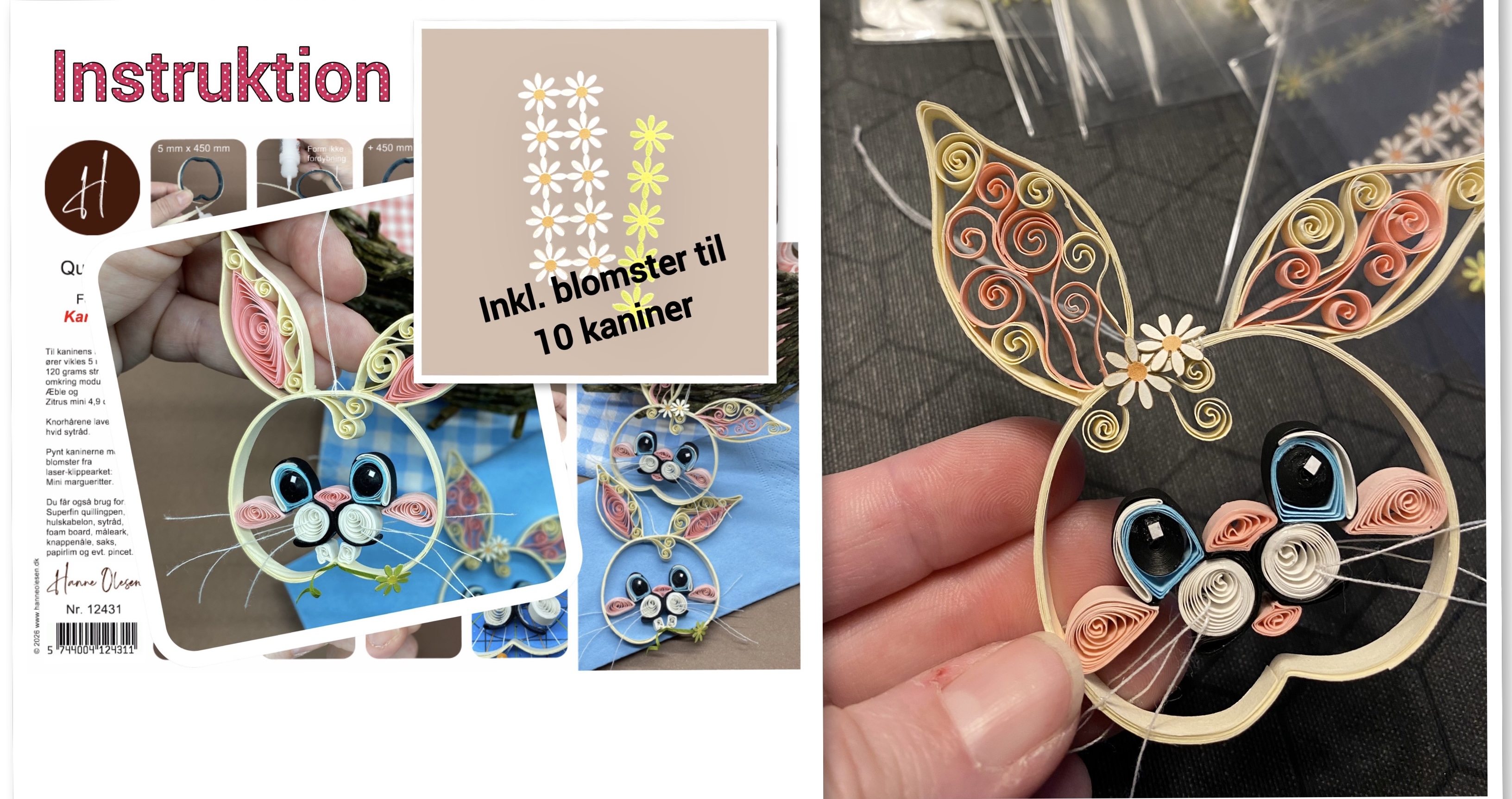 Quilling instruktion inkl. klippeark med blomster til 10 kaniner.